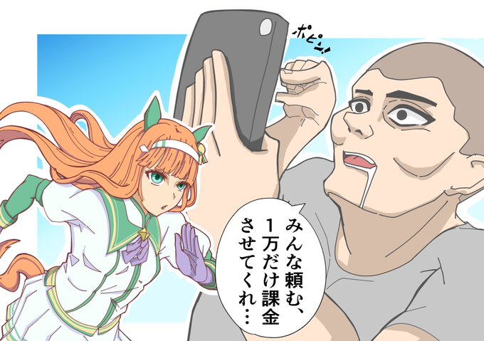 昨日のウマ娘最終回で、課金中毒者の目になったと自覚するうんこちゃんをイラストで描き起こしてみました。 #加藤純一
