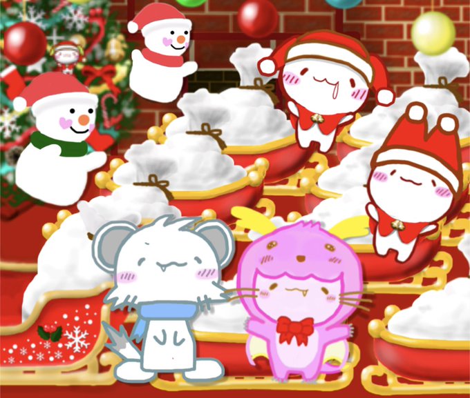 キタイイズナしゃんとどらごんにゃしゃん、ぴーしゃん、スノーマンたちが プレゼント配り手伝ってくれるって バンザ〜イヽ(´▽`)/ みんなXmasのサンタコスチューム完成❤️ #アトリエの系譜 #イラスト好きな人と繋がりたい #アトリエの系譜S #みんなで楽しむTwitter展覧会 #絵描きさんと繋がりたい