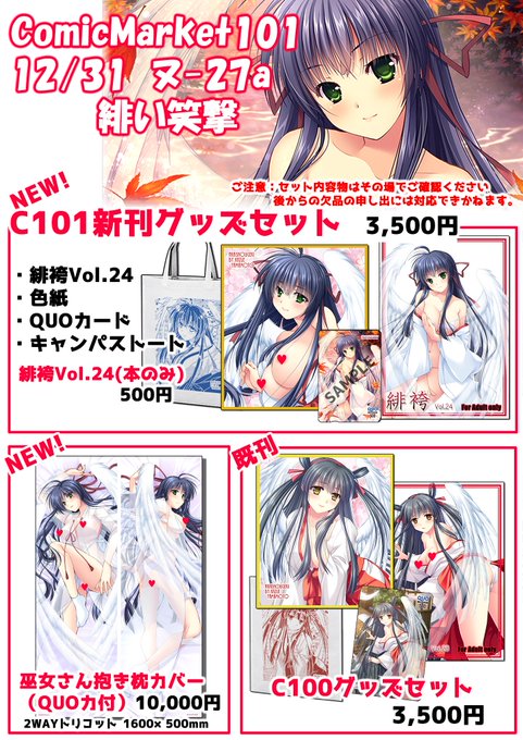 【お知らせ】冬コミ新刊「緋袴Vol.24」入稿しました! メロンブックス様で予約受付も開始しています。いつものグッズセットも近日中にboothにて予約開始します。 #C101 melonbooks.co.jp/detail/detail.…