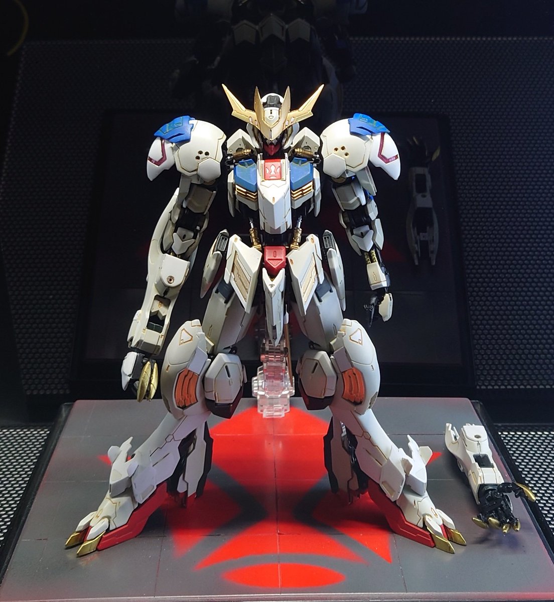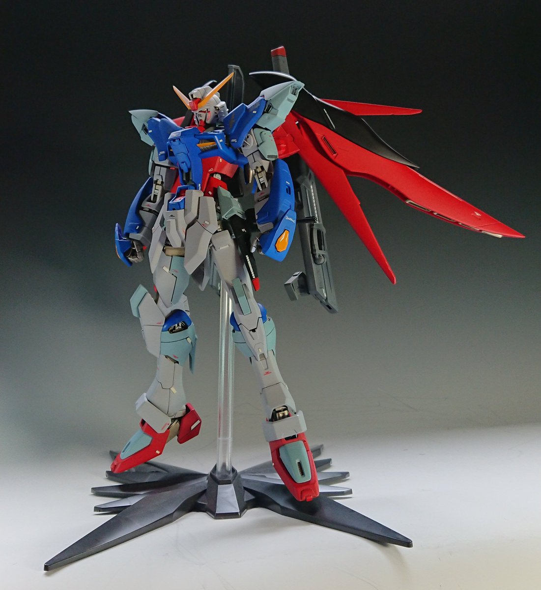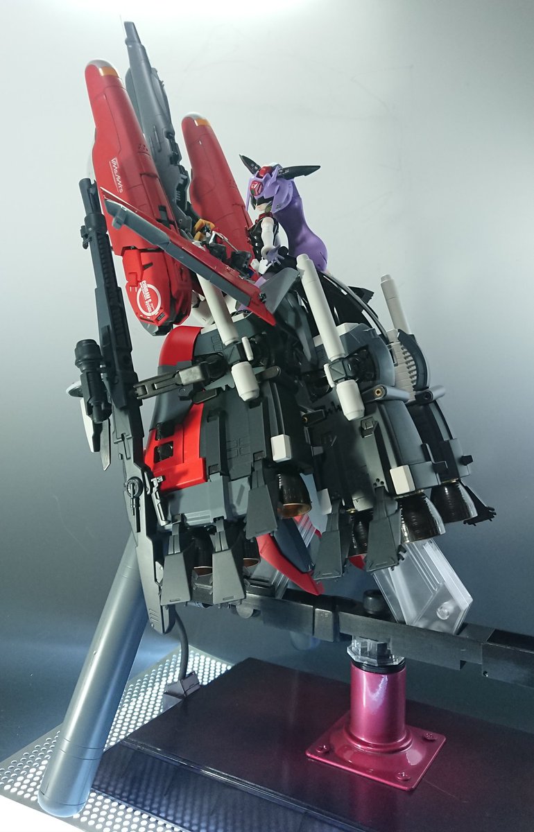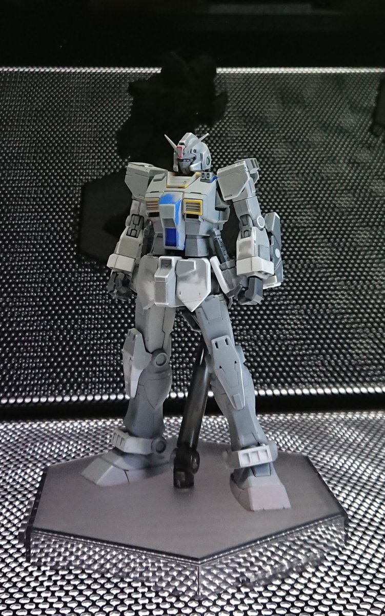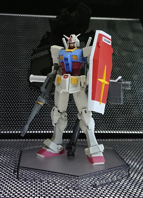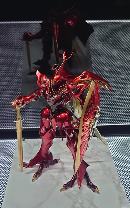 #今月作ったプラモ晒そうぜ というか今年最初の完成品。 塗装後にこのポーズで飾る事を思いつき、剣をニコイチでこしらえ、剣先と足裏に磁石を仕込んで飾ってる最中で倒れたりして周りの作品に迷惑がかからないようにしてみた。