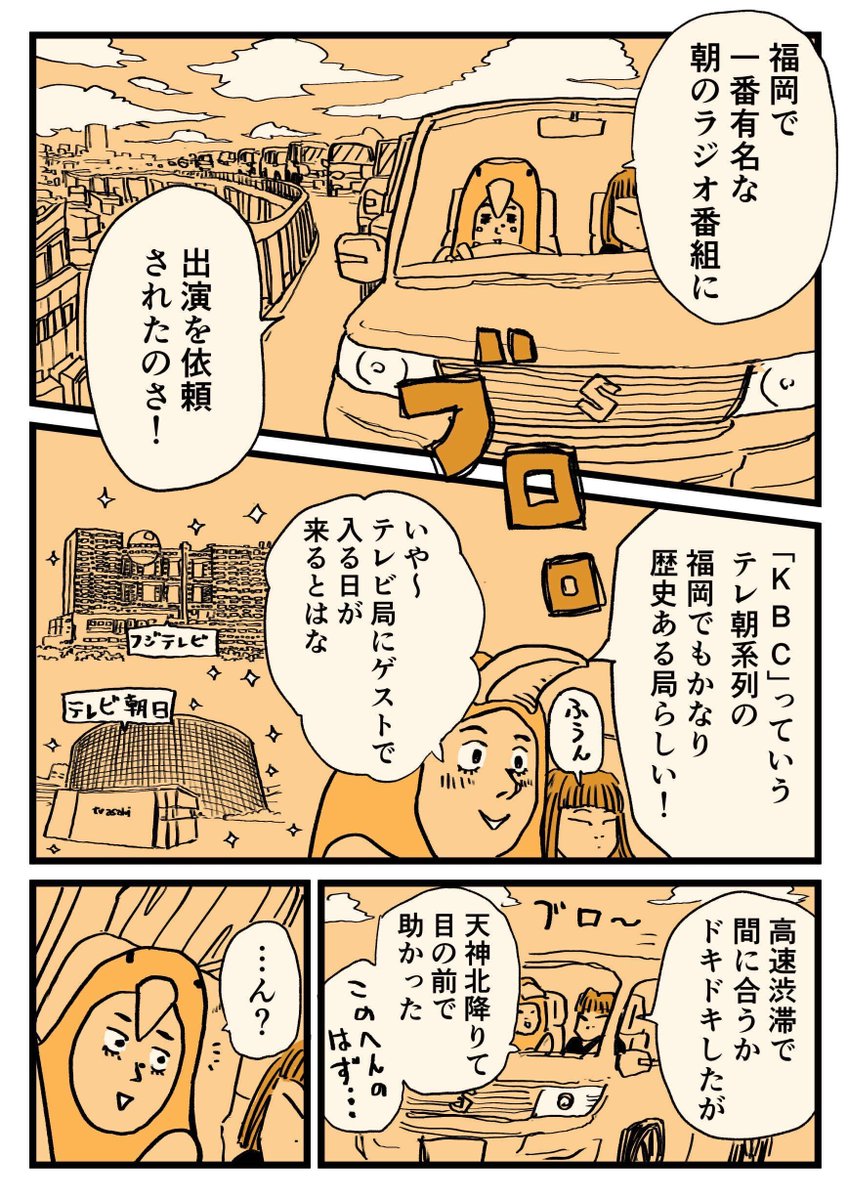 / 天神北を降りて右☞ \ 第3話「ラジオ出演と嘘」 アサデス。ラジオに出演した漫画家ふむさん 「テレビに出演したい!」野心が見え見え(笑) 制作:つのだふむ、コルク 第1話はコチラ⇩ twitter.com/KBC_manga/stat… #アサデスラジオ #漫画が読めるハッシュタグ