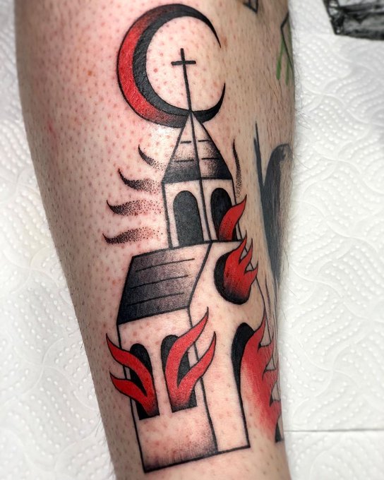 1 1 Burning church done by @TJmuray For bookings or to discuss your tattoo idea e-mail us on: k.brotherstudio@gmail.com Gift Vouchers: kbrothersstudio.bigcartel.com #Church #burning #Inktober #inkypages 22/10/31 21:51