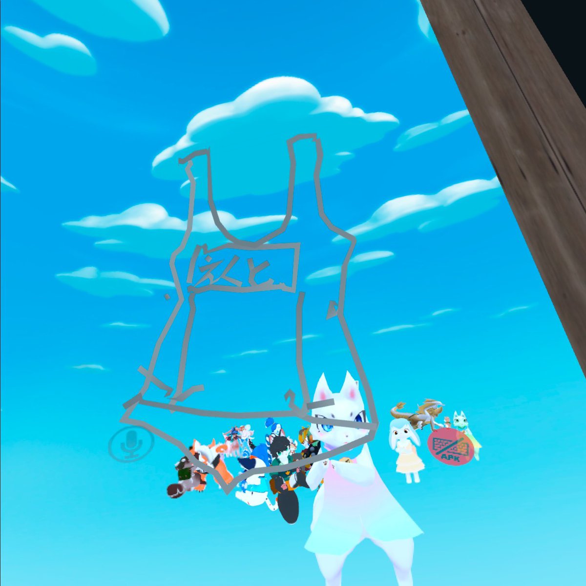 わ~VRC楽しかった~~ さすがにちょっと酔ったかも... 思いのほかフレンドわんさか増えてびっくりしたよ~ これは遊んでたら偶然見つけた落書き ボクが描いたわけじゃないぞ!!!!!