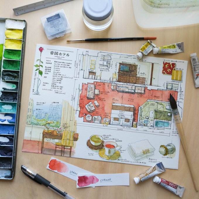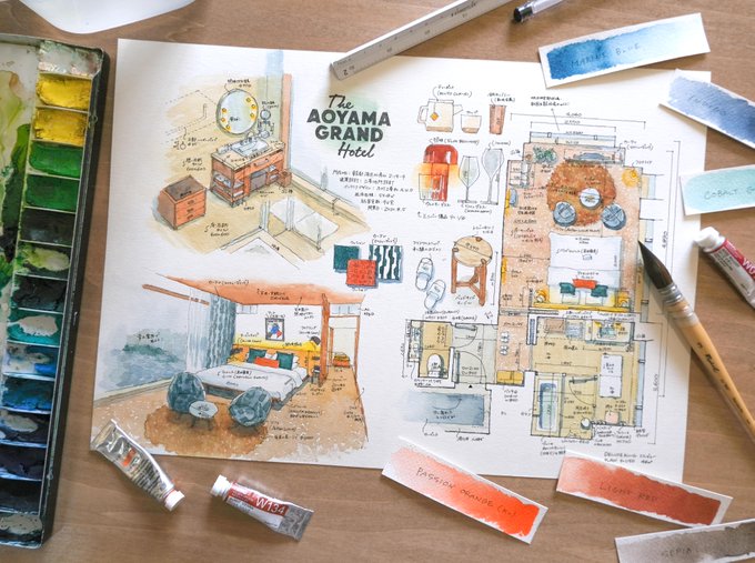 『東京ホテル図鑑 実測水彩スケッチ集』 実際に泊まって測って描いたホテルスケッチ本、 全国の書店さんとAmazon等では8/23頃より発売です! 東京・近郊の素敵なホテル23件を掲載🎨 amazon.co.jp/%E6%9D%B1%E4%B…