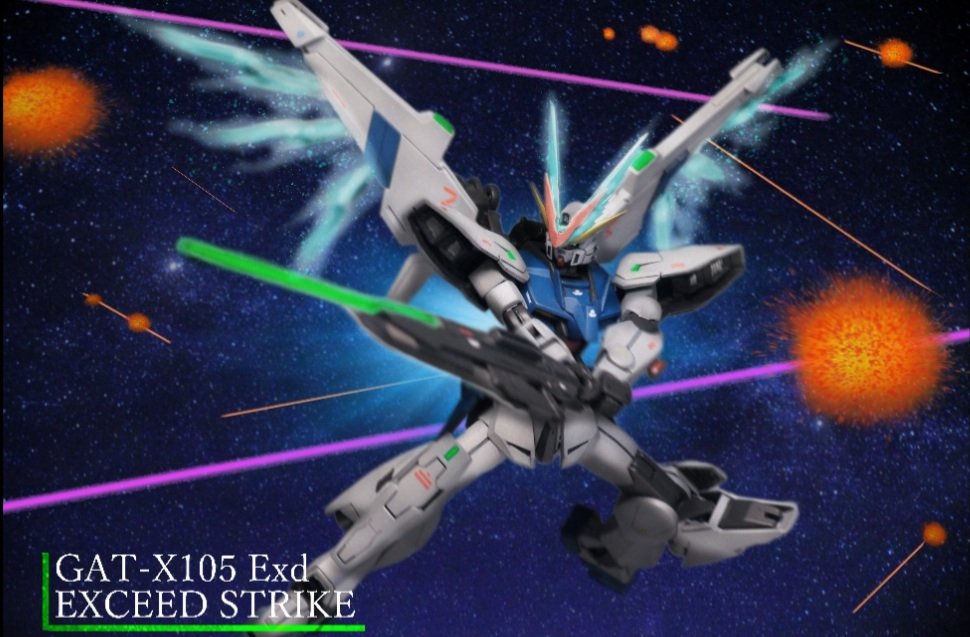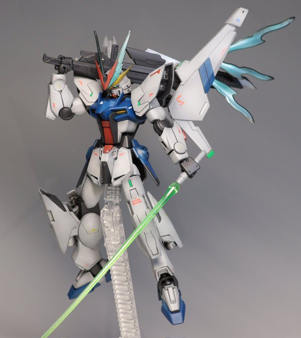 『エクシードストライク』 今年一発目の完成品です! VガンダムやF91を意識して改造しました!! リミッター解除でプラフスキー粒子が頭部、背面から外部に溢れる設定です。こちらはデスティニーを意識しました!! ↓↓続く #ガンプラ #GUNPLA #ガンダムビルドファイターズ