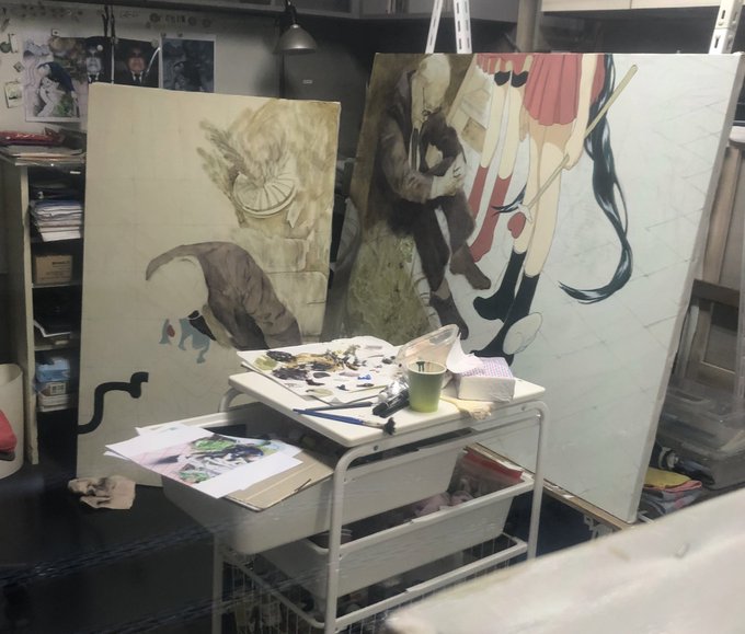 869 8193 「Universe 25 」 1455mm×1120mm oil oncanvas 60号で描いた過去作を80号で描き直したものが仕上がりました。 大きさ、80号にしたらしっくり来ました⁽ ´꒳`⁾ ちなみに私の作品に登場する男性はAKIO(昭男) といいます。 22/11/10 20:22