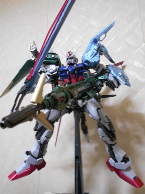 PGパーフェクトストライクガンダム完成です。 ポーズを付けると大迫力ですよ👍 #筆塗り同盟 #ガンプラの画像を貼るとRTされると聞いて