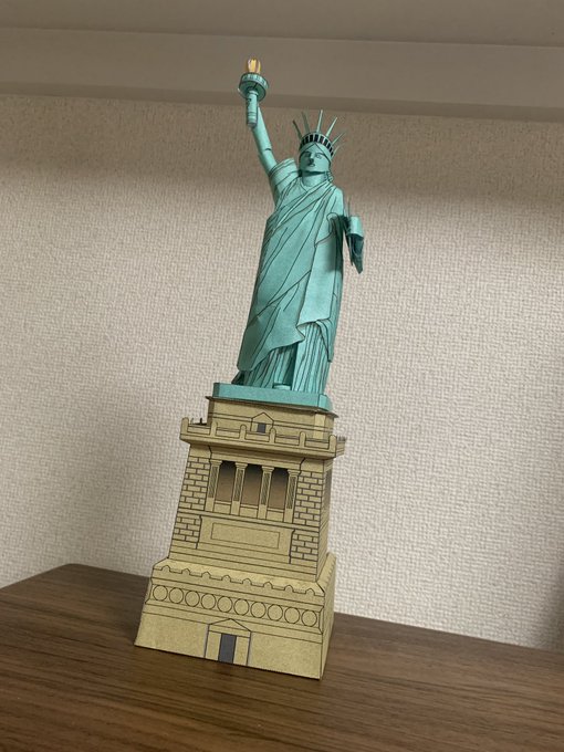 Canonが公開してる無料ペーパークラフトの「自由の女神」作った。作るの時間かかったけどフィギュア撮影に使えそう。 #ペーパークラフト