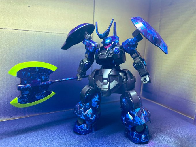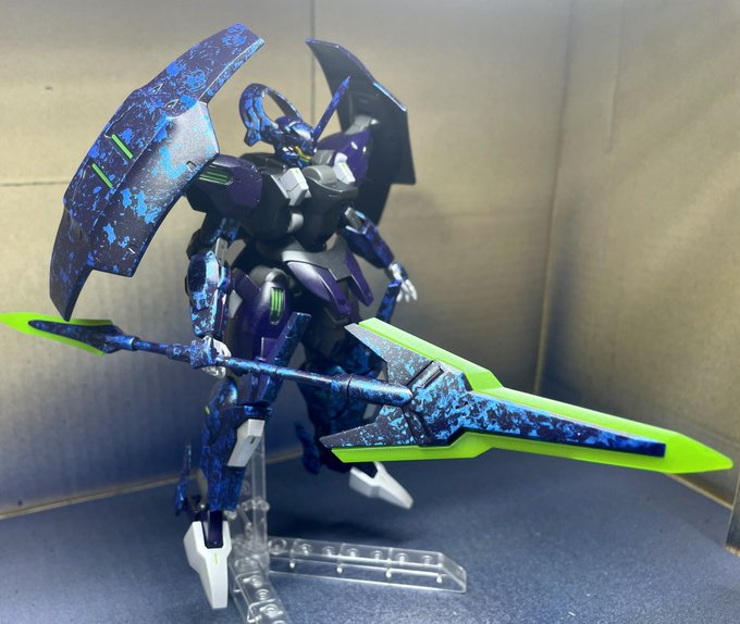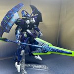 シュバルゼッテ完成です! 前回のダリルバルデと同じくブルーのラップ塗装で仕上げました! 一応対比として武装はそのままピンクにしてあります! めちゃくちゃ組みやすかった… #ガンプラの画像貼るとRTされると聞いて #水星の魔女