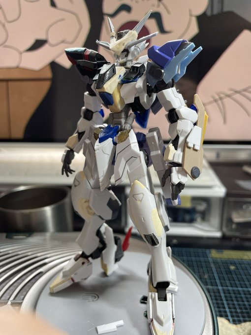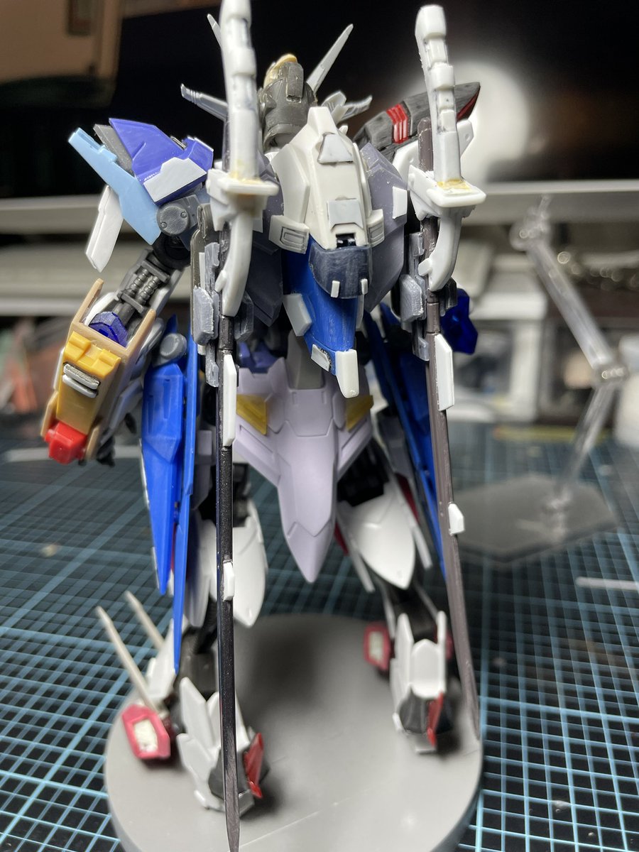 #ガンプラの画像を貼るとRTされると聞いて #ガンプラ好きな人たちと繋がりたい アスタロト改修型少し進捗。自己満の範疇ですが、穴埋めと関節の調整、肘の新造、踵の形状変更、左腕のディテール追加、バックパックの形状変更しました😄 やっぱり身長高くなると映えるね。