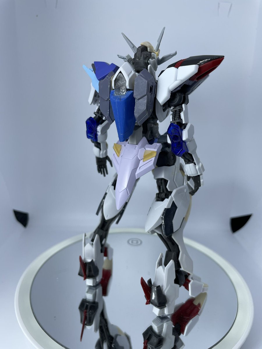#ガンプラの画像を貼るとRTされると聞いて #ガンプラ ASW-G-46ガンダムビフロンス完成とします、アニメ本編後ライドがギャラルホルンへの復讐を果たすために用意した機体という妄想をしながら作りました、いゃ〜楽しかったわ🤗ライトヘッド、レフトヘッド共にほぼスクラッチしましたが案外悪く無い。