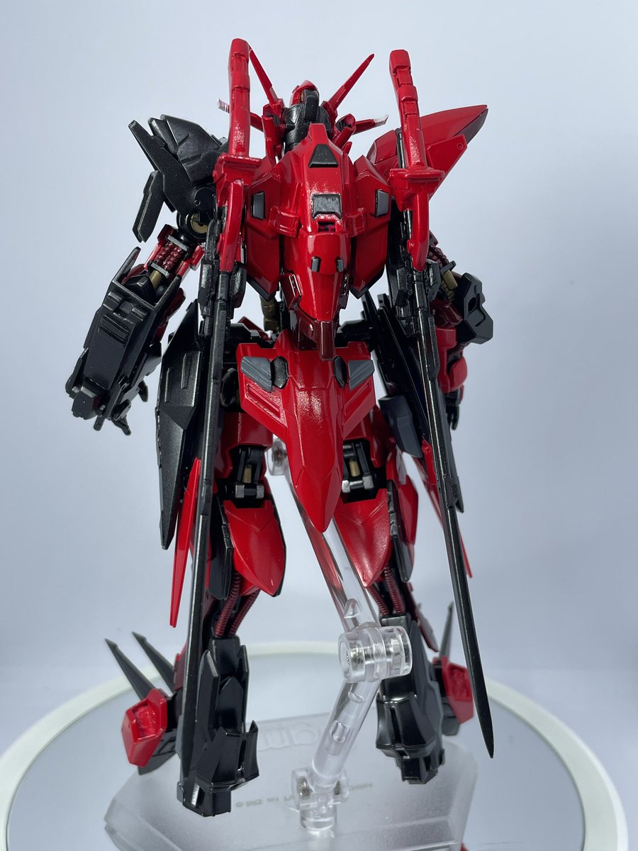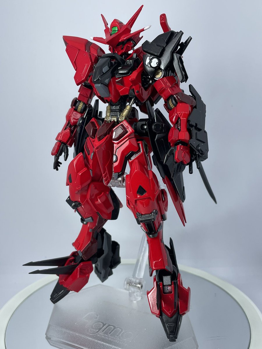 #ガンプラの画像貼るとRTされると聞いて #ガンプラ好きな人たちと繋がりたい グレイズミラージュ完成しました、キャンディ塗装は当分しません難しいねこれ😓 想定していたカラーより赤くなっちゃいましたがしゃーなし、そろそろエアブラシ導入かな🤔 8日以降いつものDCMさんに展示させていただく予定