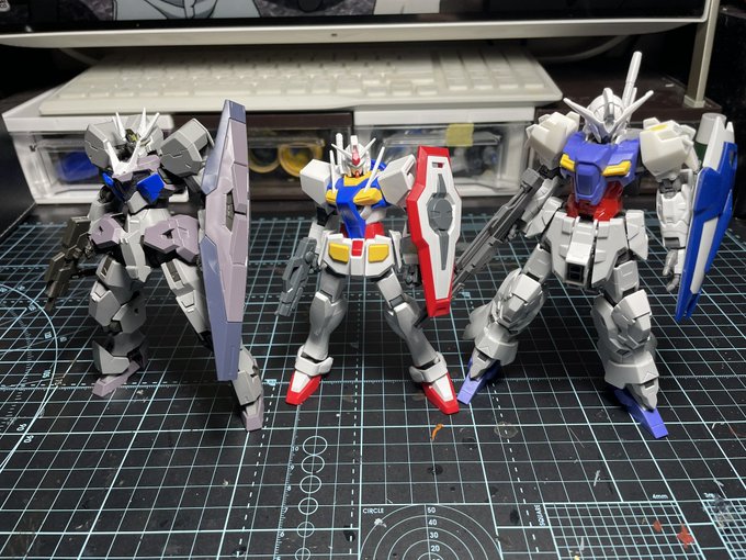 #ガンプラの画像を貼るとRTされると聞いて #ガンプラ好きと繋がりたい こういう感じのシンプルなのいいよね、サーベル1本、ライフル一丁、シールド1枚が理想🤗全部トリコロールに塗装して並べたいわ。