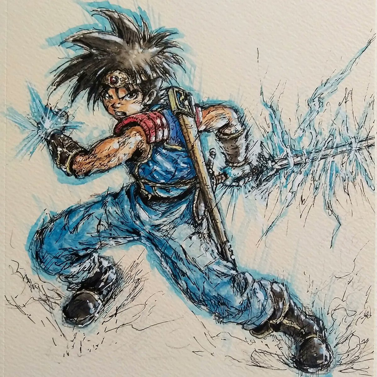 最近のラクガキ✏️ 『ダイの大冒険』より、ダイがアバンストラッシュを撃つところ。(双竜紋あり) #イラスト #ラクガキ #らくがき #落書き #スケッチ #sketch #透明水彩 #watercolor #watercolorart #watercolorillust #watercolorillustration #watercolorillustrations #illustration