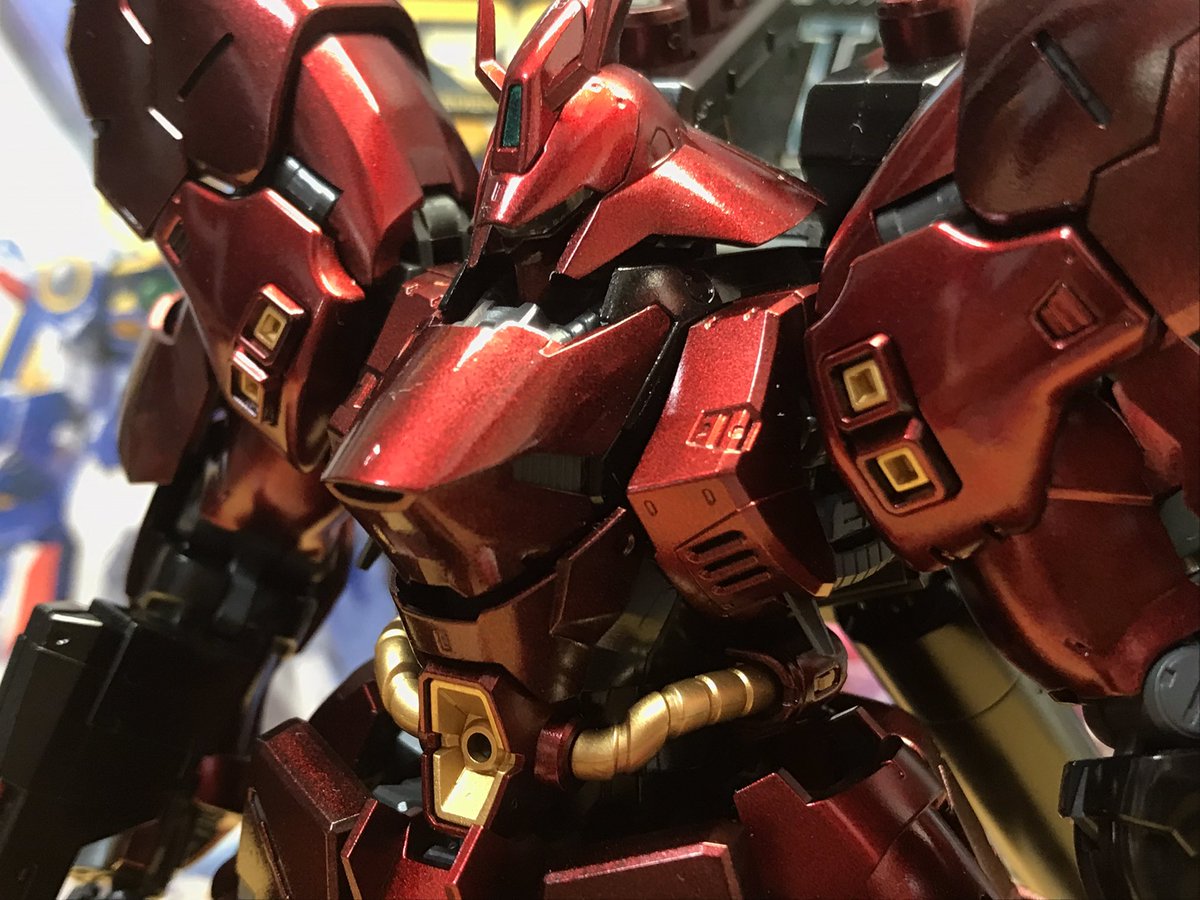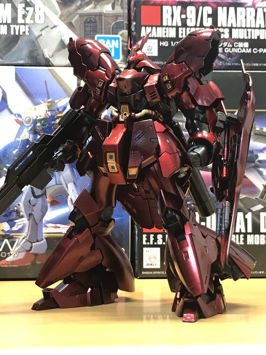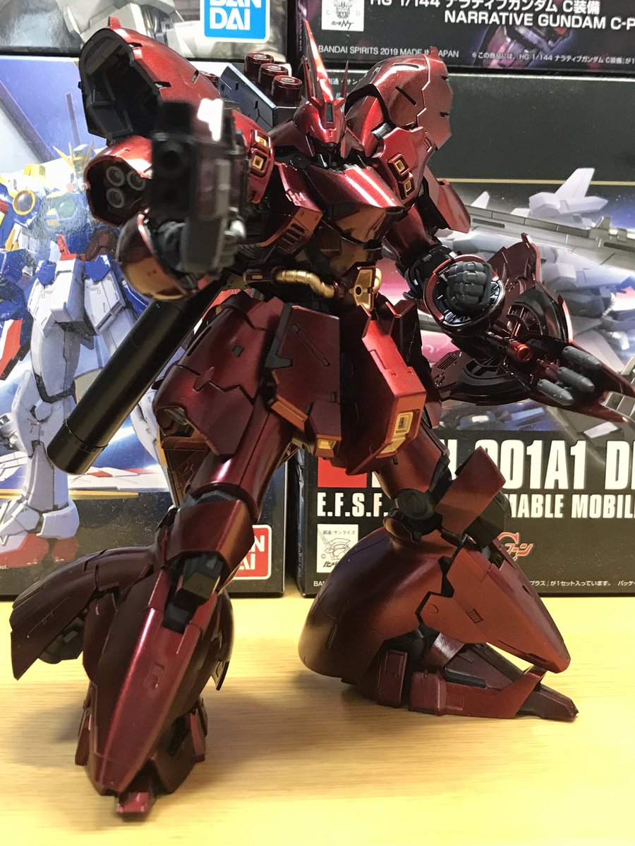 RG サザビー完成しました! 初めてのキャンディ塗装、なんとか上手くできたみたいです!w 今回はディテールアップ、デカール共に似合わない気がしたので割愛しました() おかげでテッカテカの装甲が目立つようになった…よかった( ´ ▽ ` ) #ガンプラ #ガンプラの画像貼るとRTされると聞いて