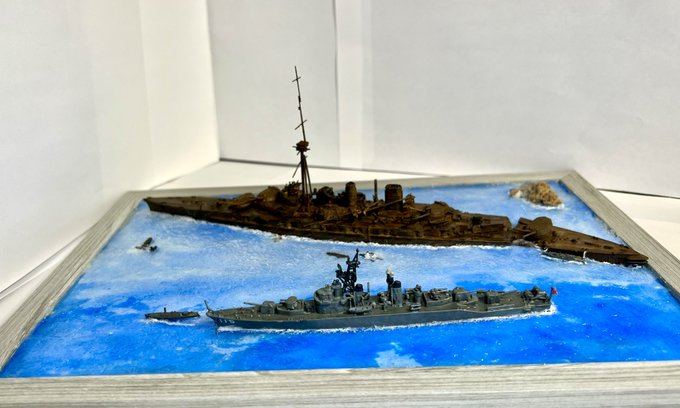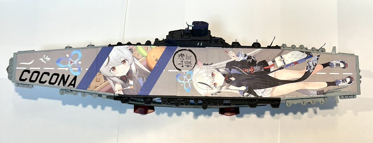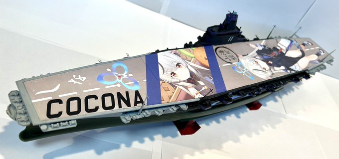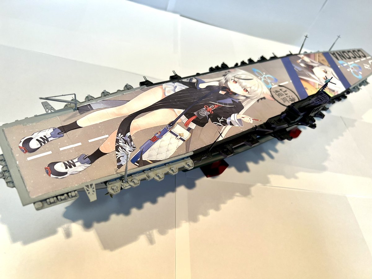 1/450空母信濃で製作した痛空母です! 全長55cm強の大きな甲板に最推しココナちゃんが貼ってあります! #ブルアカ2周年アート