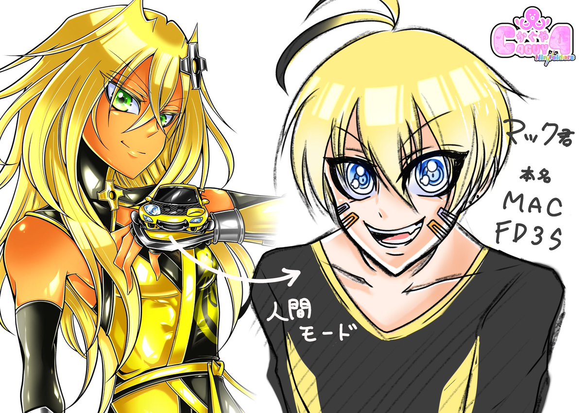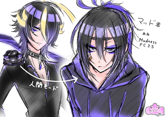 落描きですが、マサキ君の相棒(愛車)のマック君も擬人化させてみました☺️💕✨ マッドくんとは正反対な性格🥳 「どうせならカッコよく目立ちたいよな!マサキ!!」という感じの、お調子者でキザな子です☺️✨ #絵描きさんと繋がりたい #一次創作 #Ninveiders #アイビスペイント #うちの子