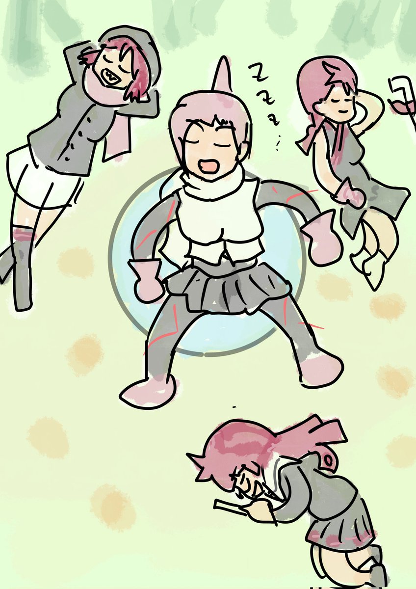 夏っぽい絵をと思ったが、どう見ても待ってるりなこ。 #ケムリクサ