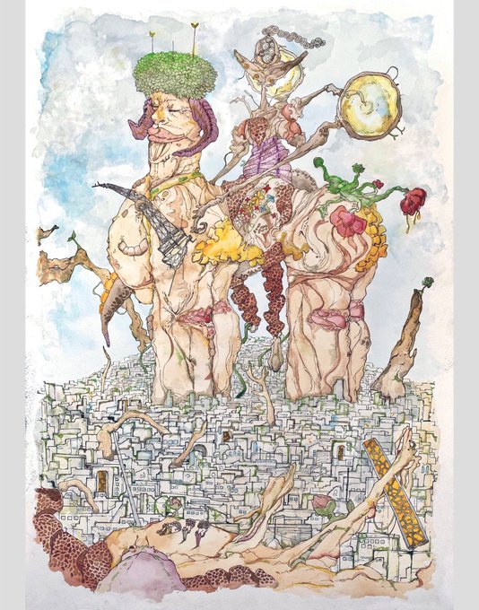 騎士と街々 #イラスト #illustration #art #透明水彩 #Watercolor #怪物 #monster #植物 #plant #街 #City