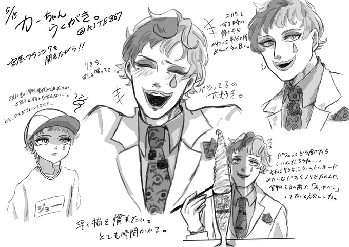 力ちゃん、描くの難しいから空中ブランコ聞きながららくがき。 #ジョー設展