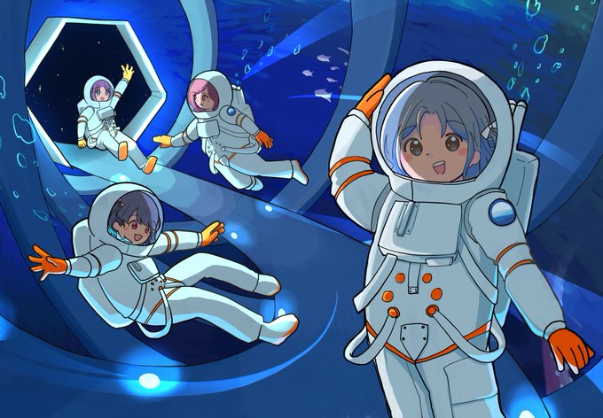 59 212 犬飼タ伊さんの企画で描かせていただいたイラストです。 どちらも未知の領域である深海と宇宙が実は繋がっていたら?というコンセプトで制作しました。 このイラストをもとに書き下ろしていただいたSSが収録されている本と、ポストカードが5/22のSSF04にて頒布されます。よろしくお願いします! 22/05/06 20:28