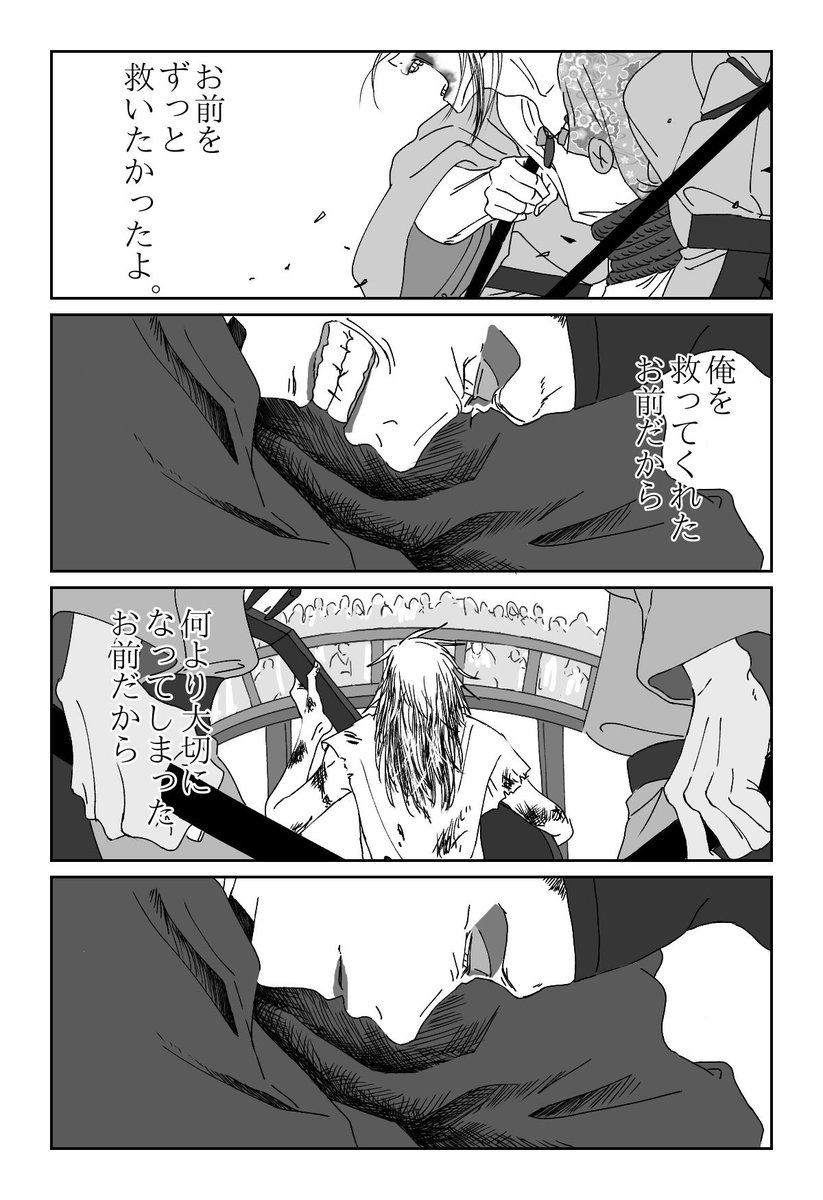 163 716 見終わってからも2人の物語が頭の中でずっとぐるぐる回っててさっき描きました。 彼を「友有」と最初に呼んだのは、友有がそう呼ばせたのは、犬王だと思います。 #犬王 #犬王見届けようぜ 22/05/30 12:23