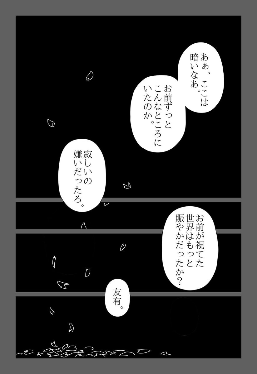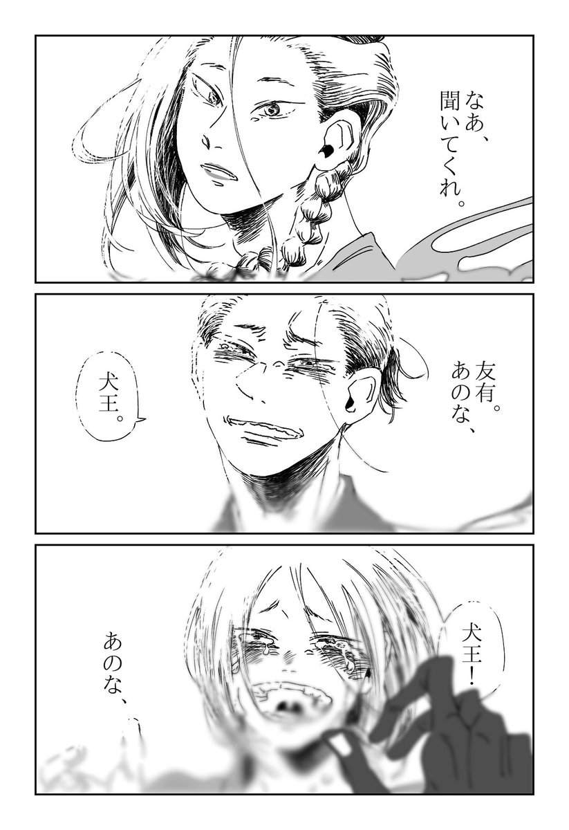 見終わってからも2人の物語が頭の中でずっとぐるぐる回っててさっき描きました。 彼を「友有」と最初に呼んだのは、友有がそう呼ばせたのは、犬王だと思います。 #犬王 #犬王見届けようぜ