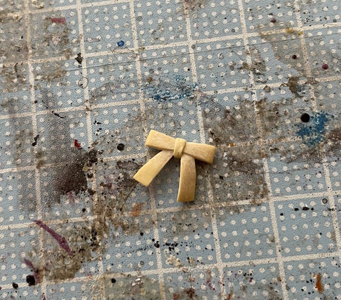 可動アズ 改造進捗 パテでリボンを作成 元フィギュアのものを流用しても良かったのですが、レベルアップも兼ねて挑戦してみました 柔らかさは感じないけどサイズ感はいいので良し! #ニチアサフィギュア改造部