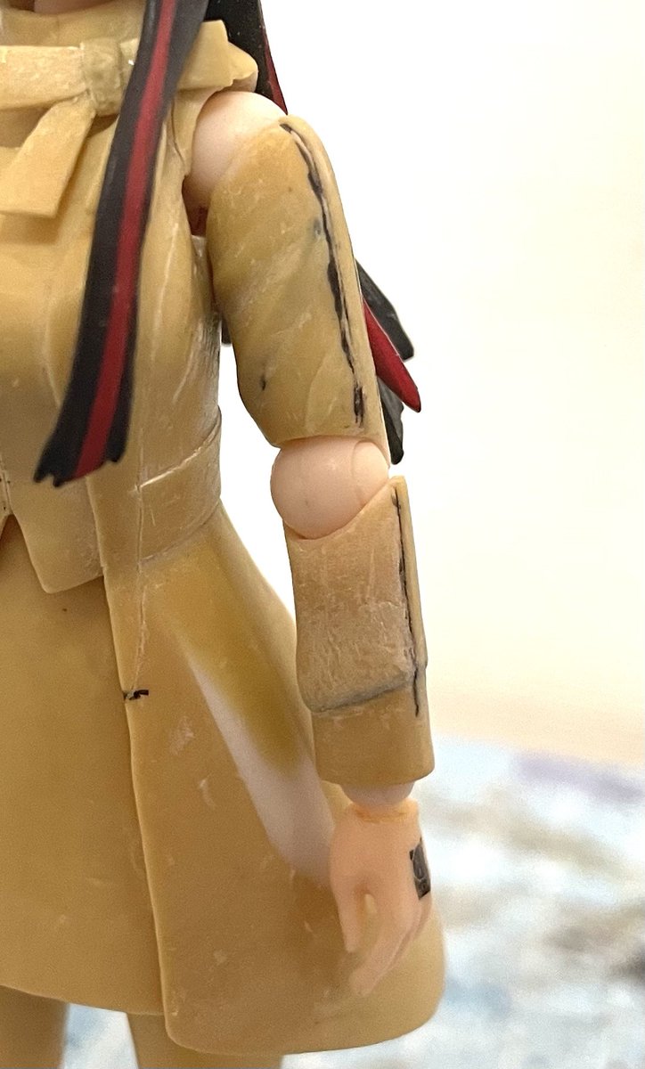 可動アズ 改造進捗 両腕の造形、完了! 服のシワっぽい造形にも挑戦してみましたが、どうですかね? 少しでも雰囲気出てるといいなー ひとまずは造形も全て終了! サフを吹いて傷や凹みを確認していきます #ニチアサフィギュア改造部