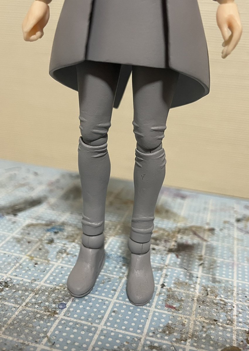 可動アズ 改造進捗 サフを吹いて凹み等を確認、紙やすりで削って調整を繰り返して納得いく状態まで仕上げました! 個人的には納得の完成度笑 お気に入りポイントは膝のシワ 細かいとこですが、服着てる感がアップした気がします #ニチアサフィギュア改造部