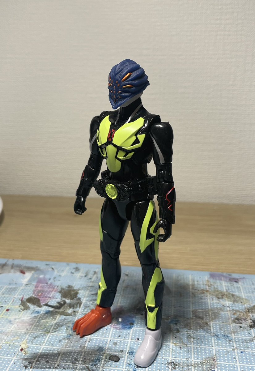 RKF改造 滅亡迅雷 進捗 相変わらず牛歩で頭部をパテとプラ板で作成中 前回より滅亡迅雷感が出てきましたね〜 耳らへんのパーツをプラ板で作成 かなり小さかったですが、割と綺麗にできて満足 #ニチアサフィギュア改造部 #仮面ライダー滅亡迅雷 #仮面ライダーゼロワン