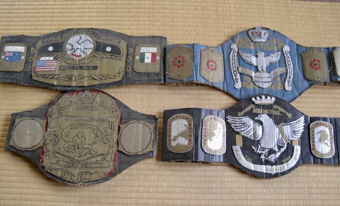 小学6年生の時に製作したベルトです😊 今は我が家の押し入れで眠っております💤💤 #ペーパークラフト #チャンピオンベルト #プロレスのチカラ