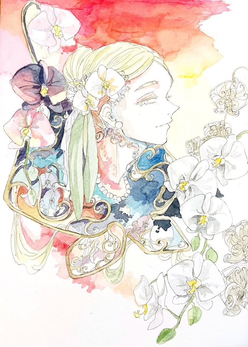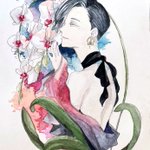 1 8 授業課題 この絵とあと何枚かでグッズ作ります。 #水彩 #創作 #アナログ 22/06/03 17:01