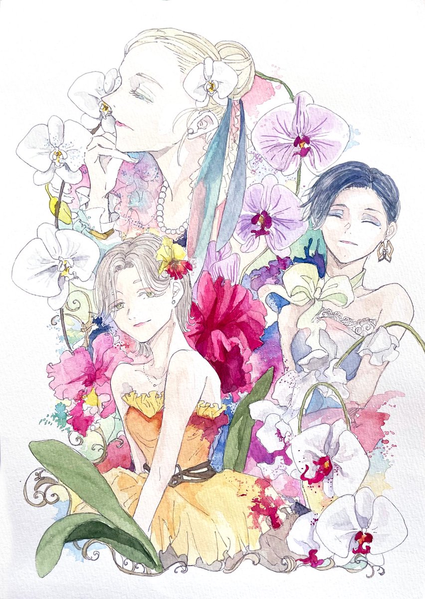 #神椿市復興美術部 #透明水彩 #アナログ これは人にあげるやつ 5人絵はめちゃくちゃ時間かかるな。