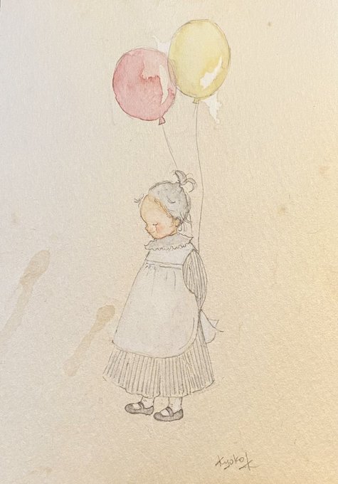 A girl with balloons #水彩画 #水彩イラスト #アナログ絵 #アナログイラスト #絵本 #女の子イラスト