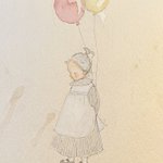 0 1 A girl with balloons #水彩画 #水彩イラスト #アナログ絵 #アナログイラスト #絵本 #女の子イラスト 21/12/01 07:49