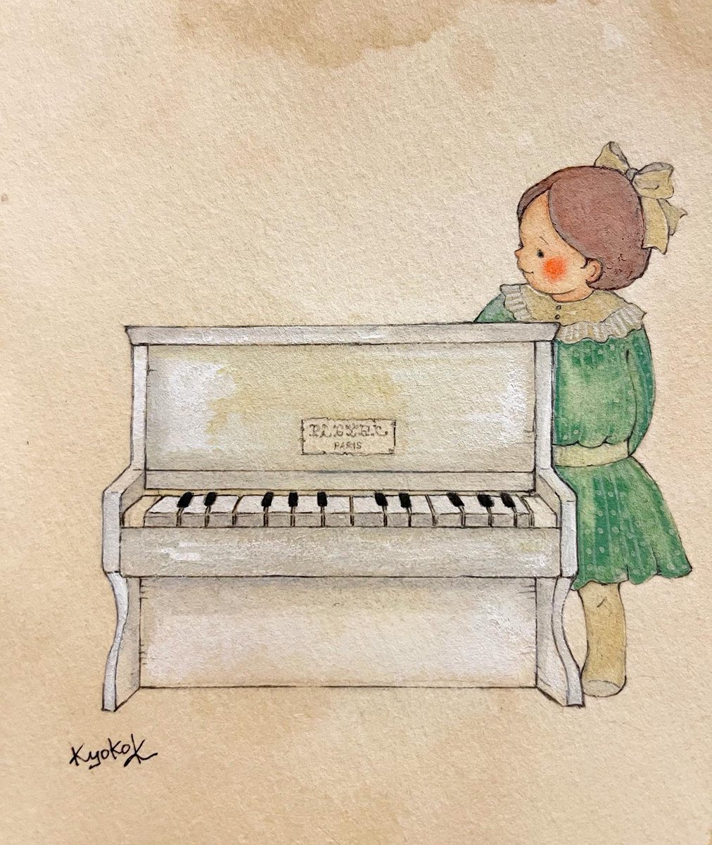 0 5 #水彩画 #水彩イラスト #アナログ絵 #アナログイラスト #絵本 #女の子イラスト #トイピアノ 22/02/07 20:33