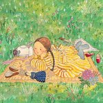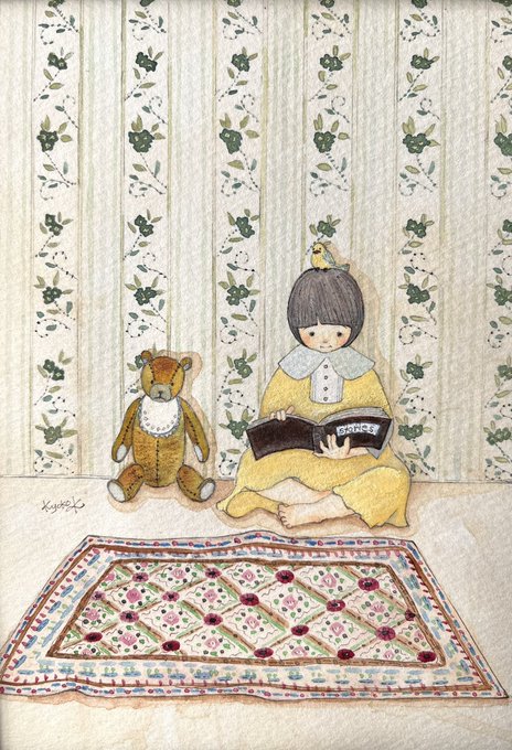 0 4 #水彩画 #水彩イラスト #アナログ絵 #アナログイラスト #絵本 #女の子イラスト #テディベア #読書 #ラグマット #ビンテージ壁紙 22/02/07 20:35