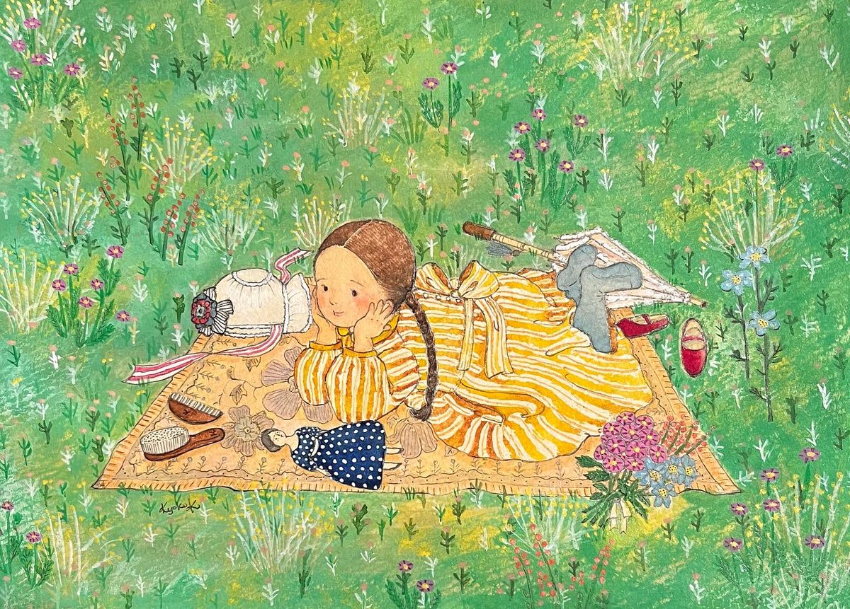 0 4 #水彩画 #水彩イラスト #アナログ絵 #アナログ絵を流してアナログ民を増やそう #絵本 #女の子イラスト #花畑イラスト #春イラスト 22/03/12 00:27