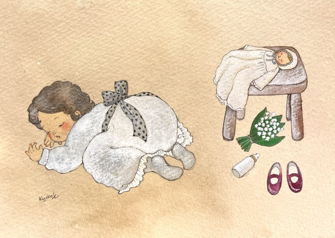 0 2 #水彩画 #水彩イラスト #アナログ絵 #絵本 #女の子イラスト #赤ちゃんイラスト 22/02/27 12:19