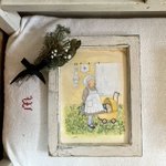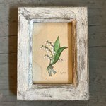 ''スズランのブーケ'' オーダー作品です。 原画は葉書ほどのサイズです。 画用紙、マット、フレームはアンティーク加工しています。 #水彩画 #アート #スズランイラスト #スズラン #アナログ絵 #絵本 #アナログイラスト