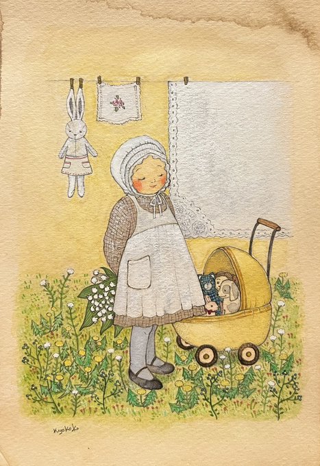 #水彩画 #水彩イラスト #手描きイラスト #アナログイラスト #女の子イラスト #ドール #絵本