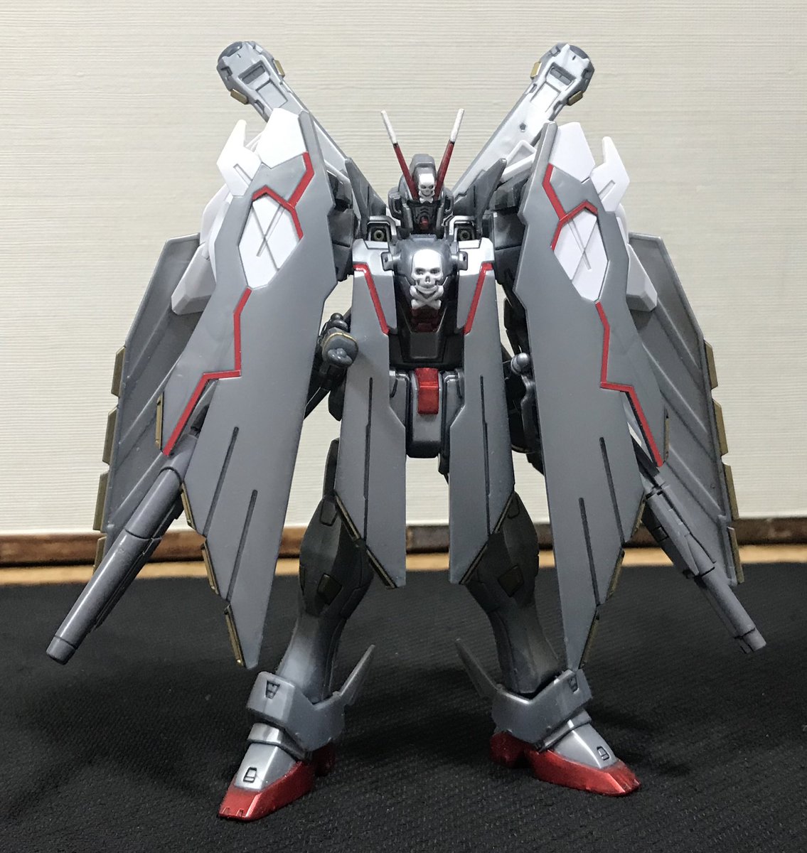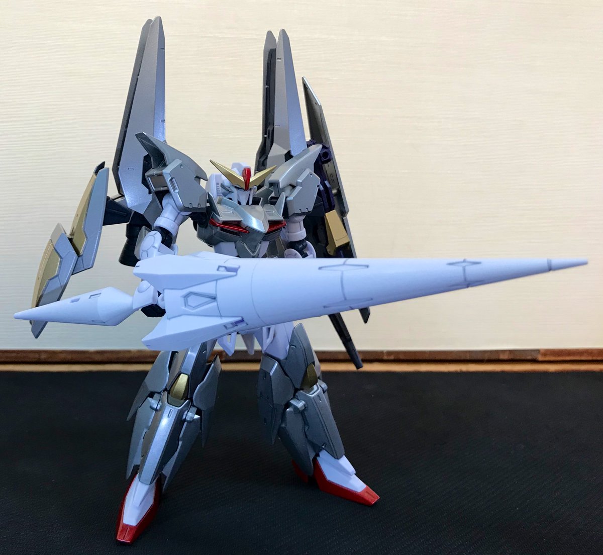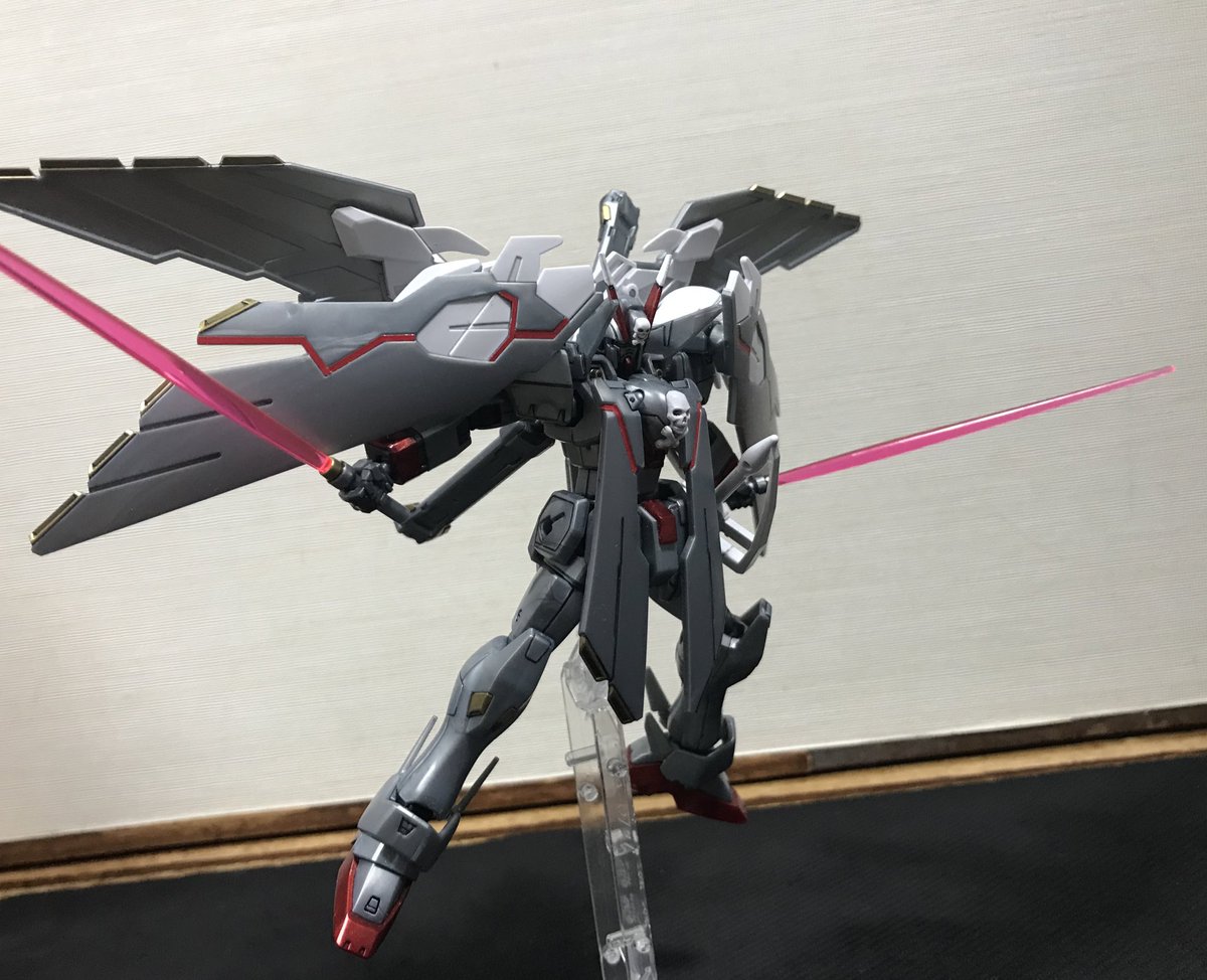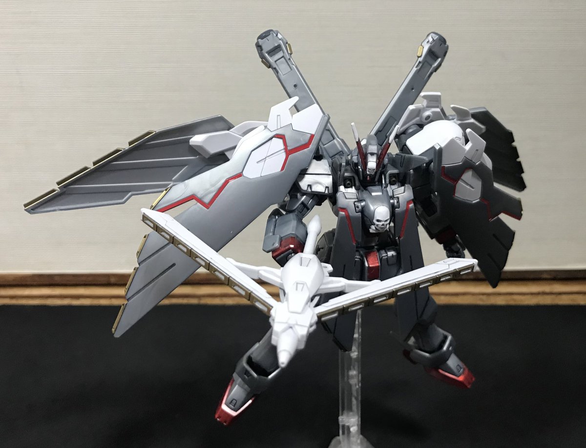 #クロスボーンガンダムX0フルクロス 完成しました😊 ゆっくり作ってたら1ヶ月くらい経ってた😅 黄色いシールの所だけゴールドで塗装しました。 少しでもメタルビルドっぽくしたくて… #ガンプラ #ガンプラの画像を貼るとRTされると聞いて