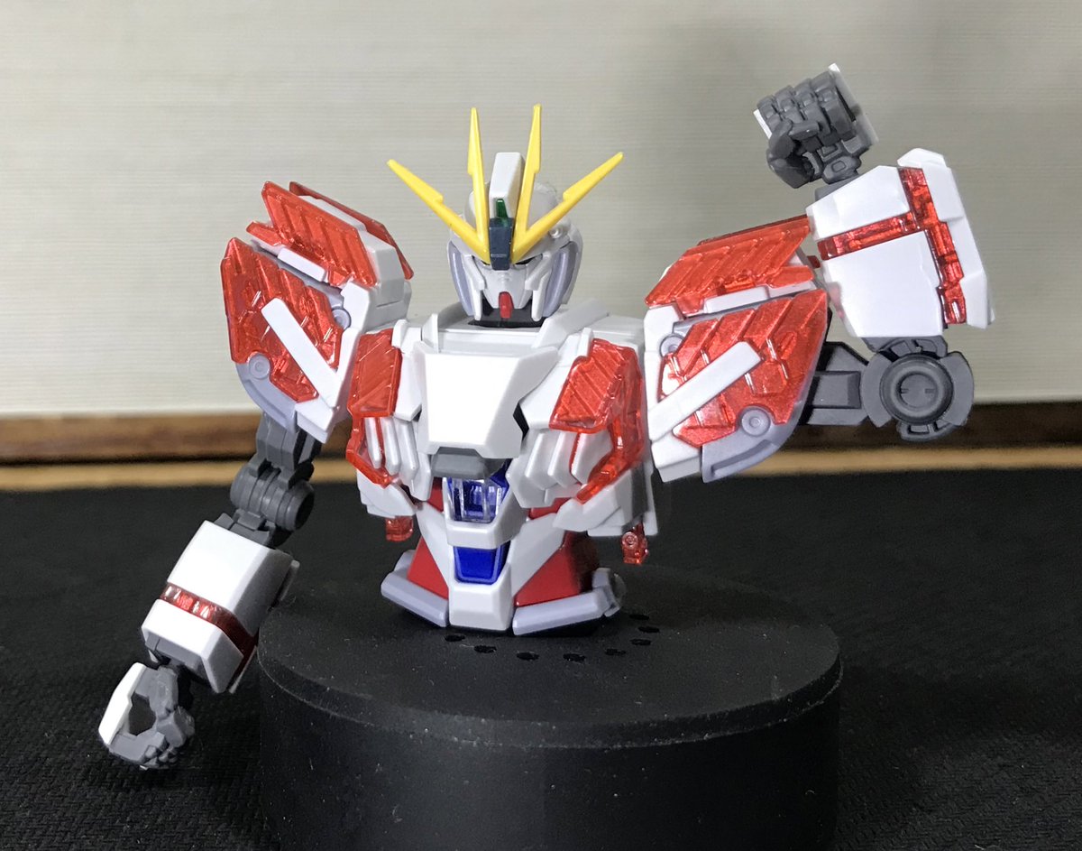 腰、武器を作って完成です❗️ 武器を装備するとこんな感じです😊 シールドは背中にも装備できます サイコフレームは裏側からメタリックレッドで塗装してみました。 これで赤身っぽさが減って見えると良いな😅 #ガンプラ #ナラティブガンダムC装備 #ガンダムナラティブ