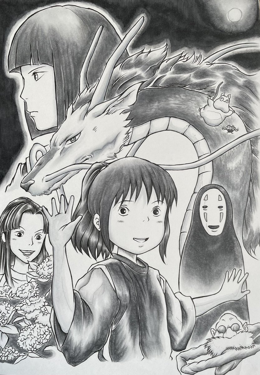 こんばんは✨ 三連休暑かったですね💦 金曜日まで過去絵ですが毎日投稿で少しうるさくなります🙇♂️ 人生で1番見たジブリは千と千尋の神隠し🐉✨カオナシのような愛着あるキャラが新作で出るか期待です✨🤭 #ジブリ #千と千尋の神隠し #ジブリファンアート #模写 #絵描きさんとつながりたい