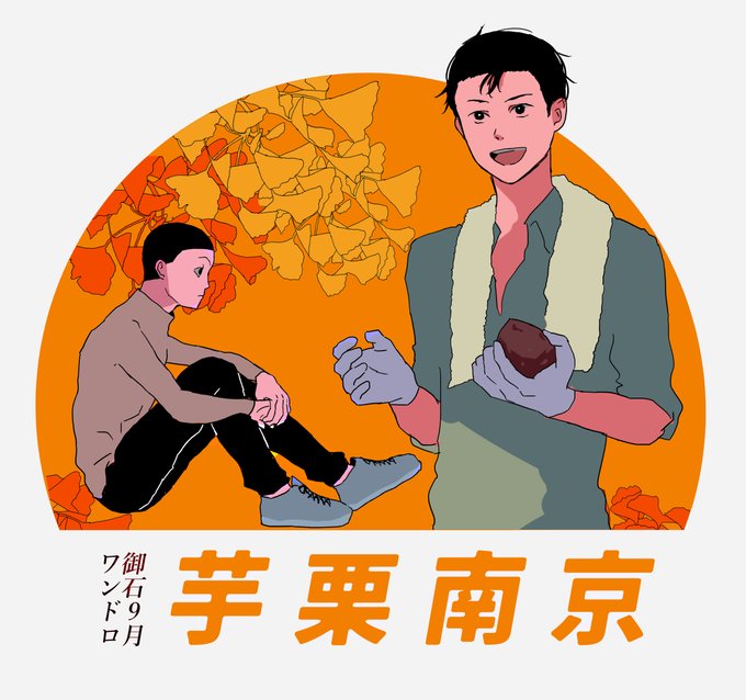 11 38 #御石ワンドロ 芋栗南京 (公式絵の🍠持ってるタオル石くんがとても好きで、定期的に焼いて御くんにもあげないかなと思った絵) 22/09/26 01:28