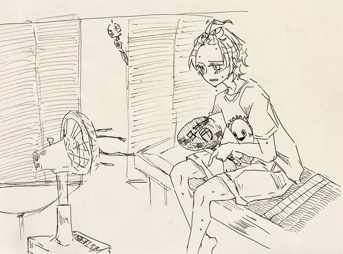 夏だからまたボタン緩めとる姿見せてくれんか?の落書き🔫 #かな絵