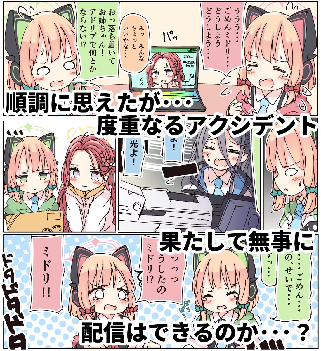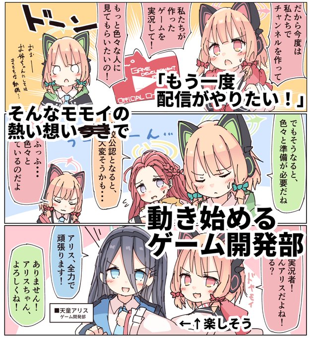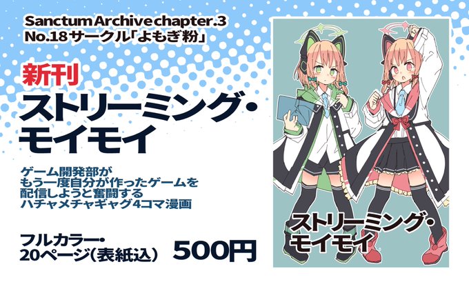 67 216 今月3日(土)に開催されるサンアカ3でサークルよもぎ粉(No.18)が頒布する予定の本です❗️ ゲーム開発部の皆がもう一度配信をするために、色々頑張るフルカラー4コマ漫画です。 ☀️☀️お品書き等はリプ欄をご覧頂ければ幸いです。 23/06/01 07:08