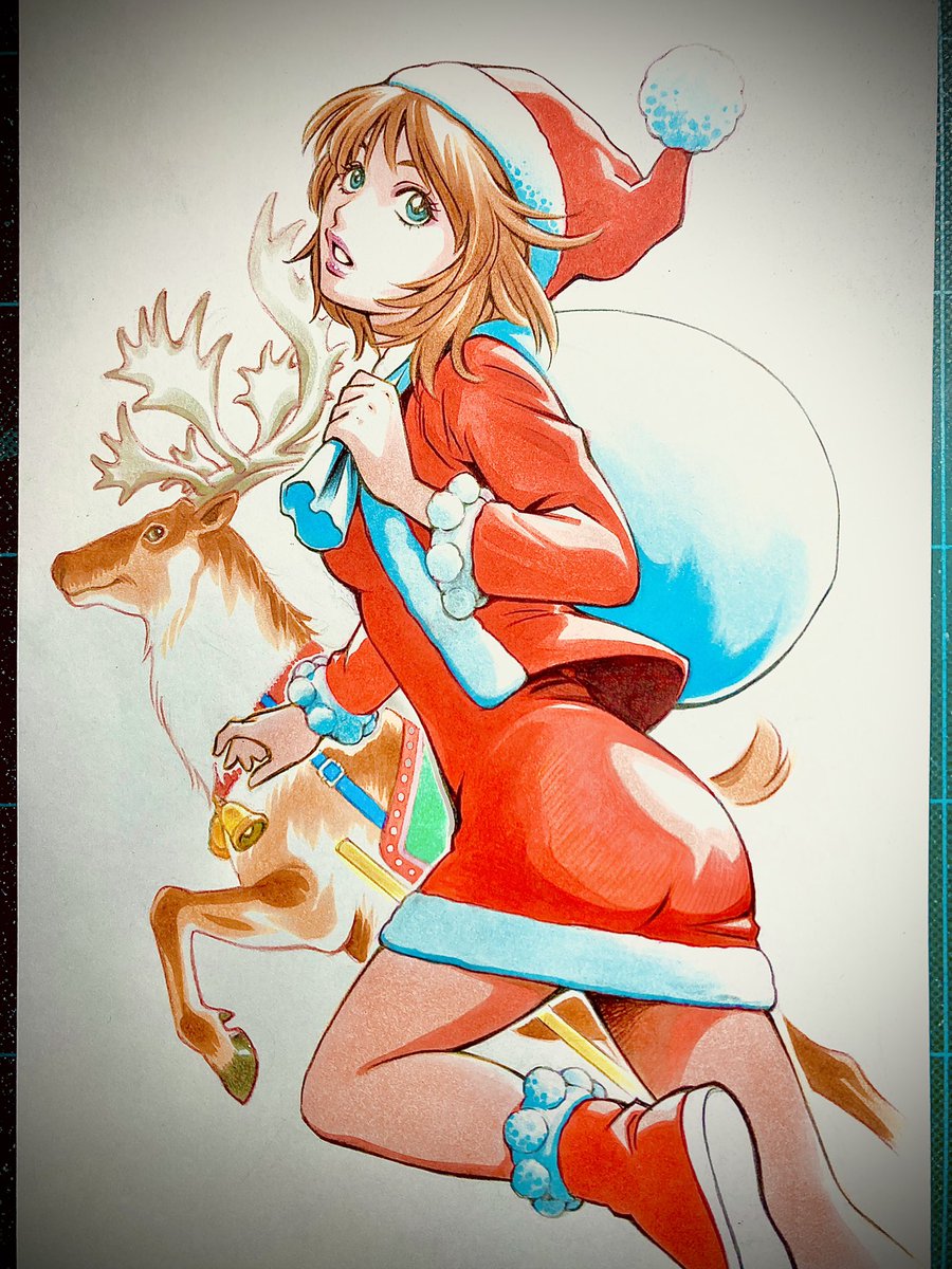 今年は時間的に無理かなぁと思いつつあわてて描いたクリスマスイラスト…💦 来年はイブに合わせてきちんと描きたいので、今年はこのくらいで…😅 #クリスマスイラスト #アナログカラーイラスト #サンタコス女の子イラスト