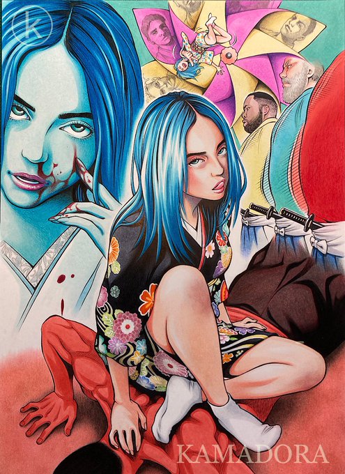 こんばんは🌙.*·̩͙ KAMADORAです✨ 先日投稿したビリー・アイリッシュの完成イラストですが、動画編集ソフトで静止画風に編集したもので、何だか画像がボケ~っとしてましたので、あらためて投稿しておきます😅💦 #アナログイラスト #コピックイラスト #ビリー・アイリッシュイラスト